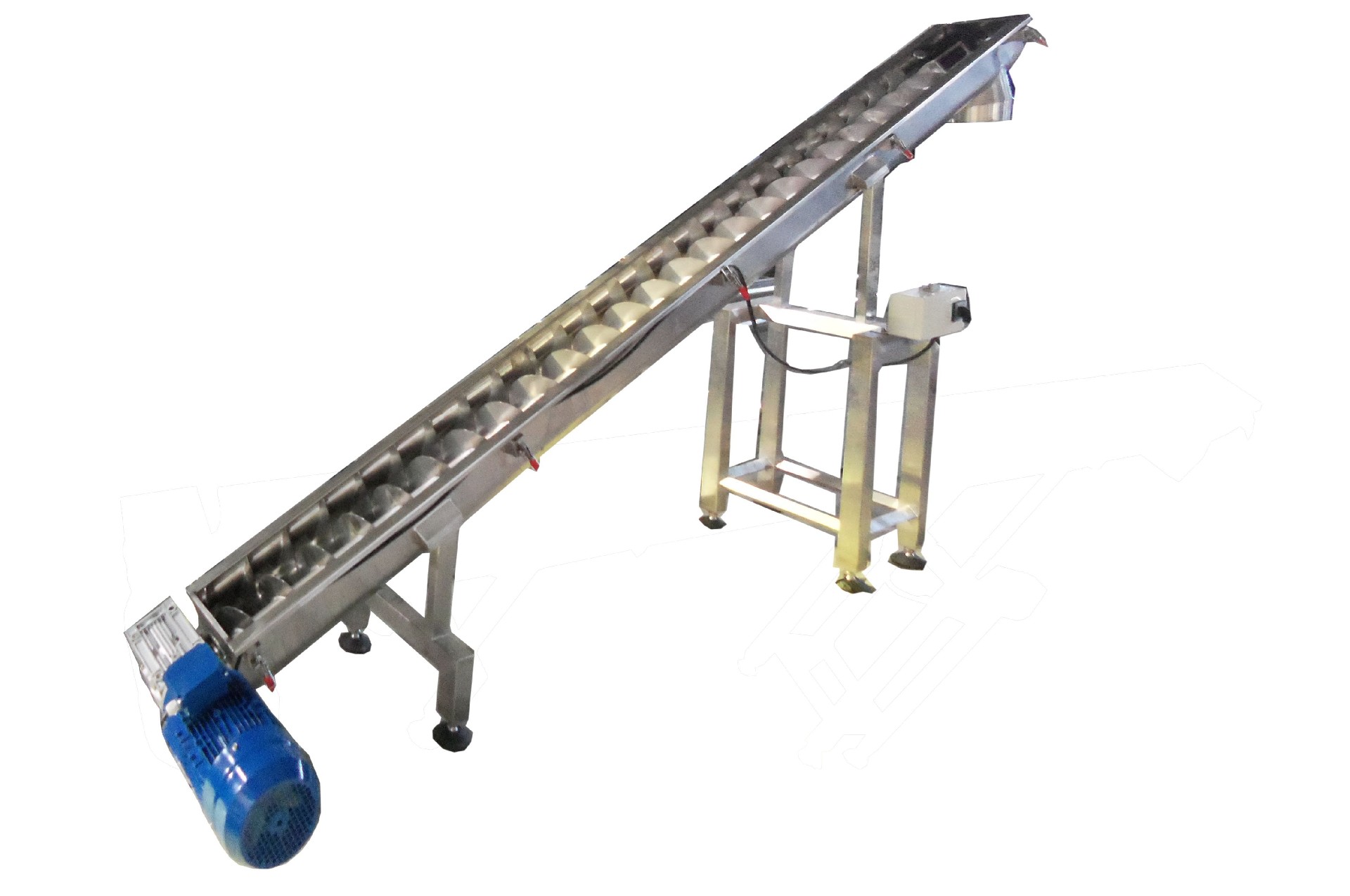 上料管為U型槽,槽上有不銹鋼圓弧蓋,用卡扣扣緊,中間用密封條密封,不漏粉,打開(kāi)蓋子便可方便清洗。